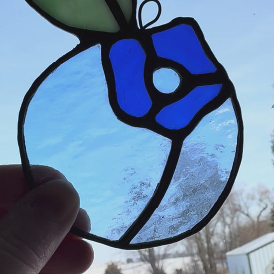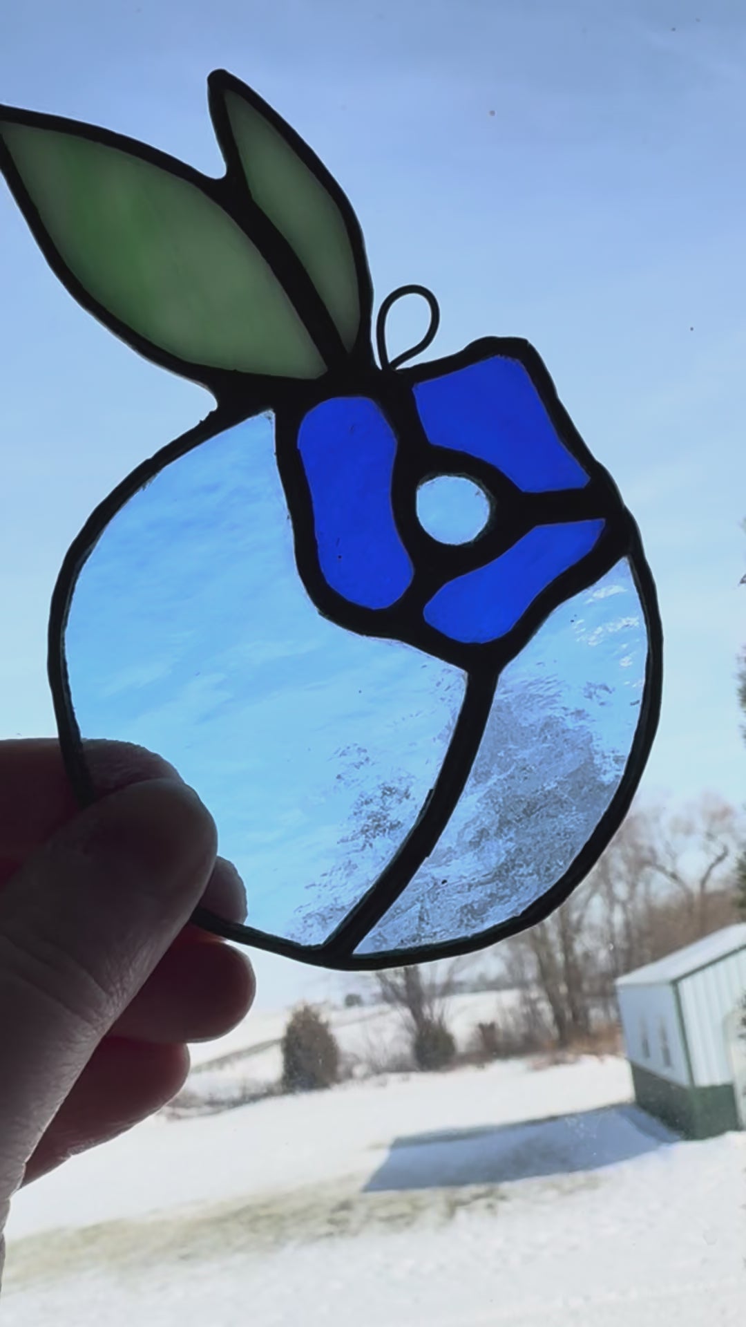 I first made this design for a group of sisters and at first I thought how am I ever going to make the cute ripply top of a blueberry actually look like that in glass?? But once I did five sketches and with some critique from my sister - this lil cutie came to life and it’s honestly one of my favorites in my glass rotation and a favorite of the Farmers Market. This lil berry measures approximately 4.5x3 inches.