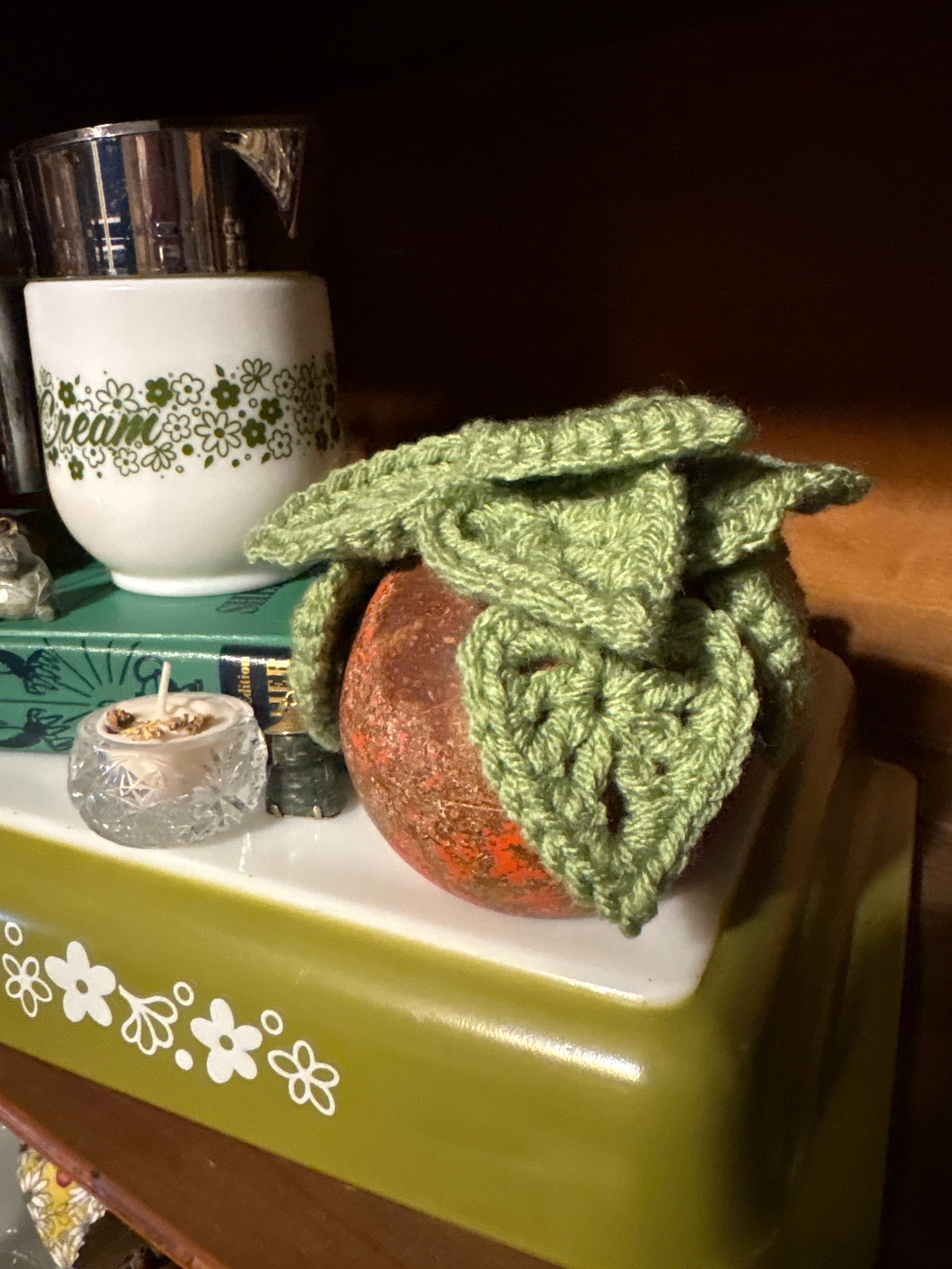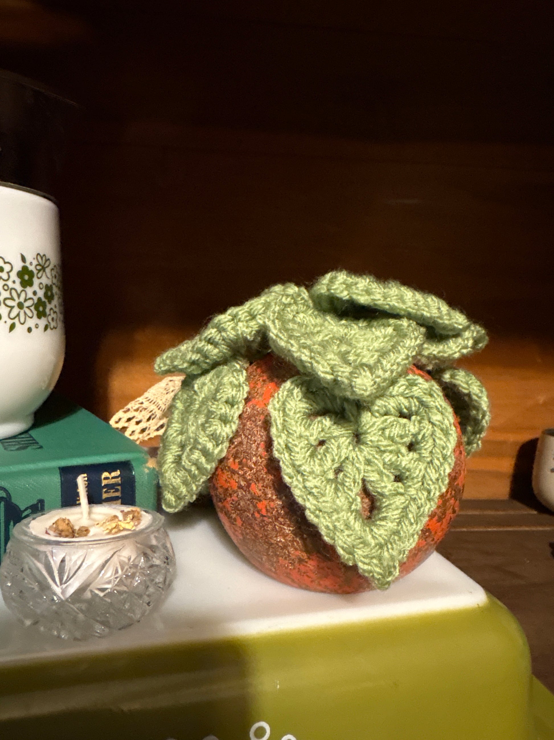 Along my thrifting journey I have collected so many croquet balls and pool balls - I love using them for decor so then I wondered how I could incorporate crochet plants into the mix! The answer is that I took the balls and milled a hole in the top for a ‘vase’ and put a flat on the bottom so it could sit properly flat for decor.