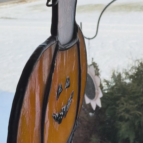 Materials: glass, copper foil, lead solder, black patina, finishing wax