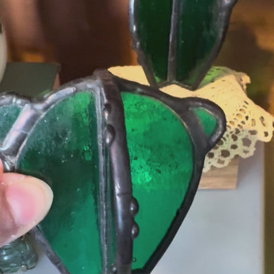 Materials: Glass, Copper Foil, Lead Solder, Black Patina, Finishing Wax