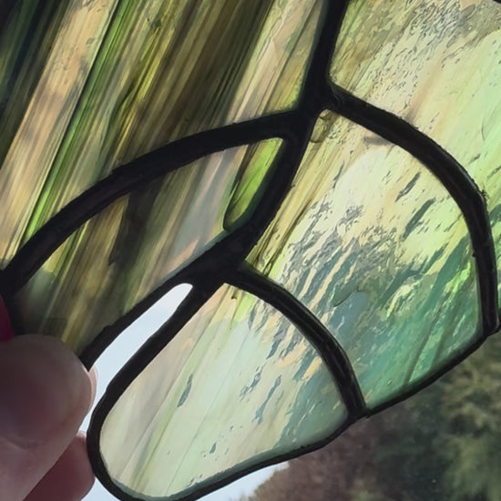 Materials: glass, copper foil, lead solder, black patina, finishing wax