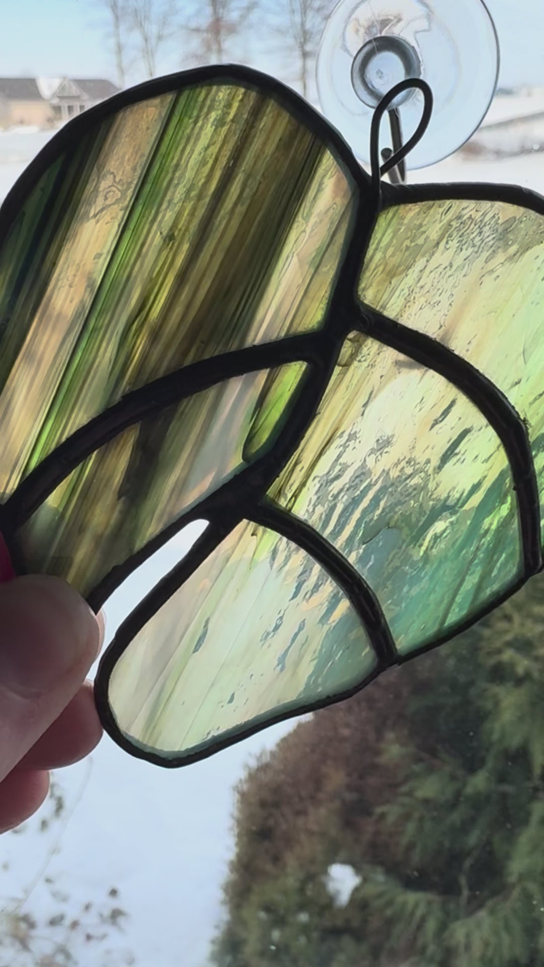 This is my original monstera design and size - and one of my first leaf patterns I ever sketched. This glass is fun because it has a lot of texture!