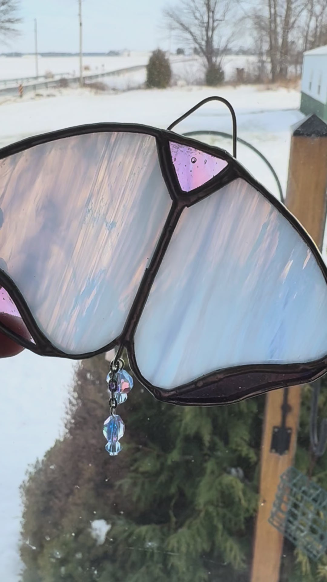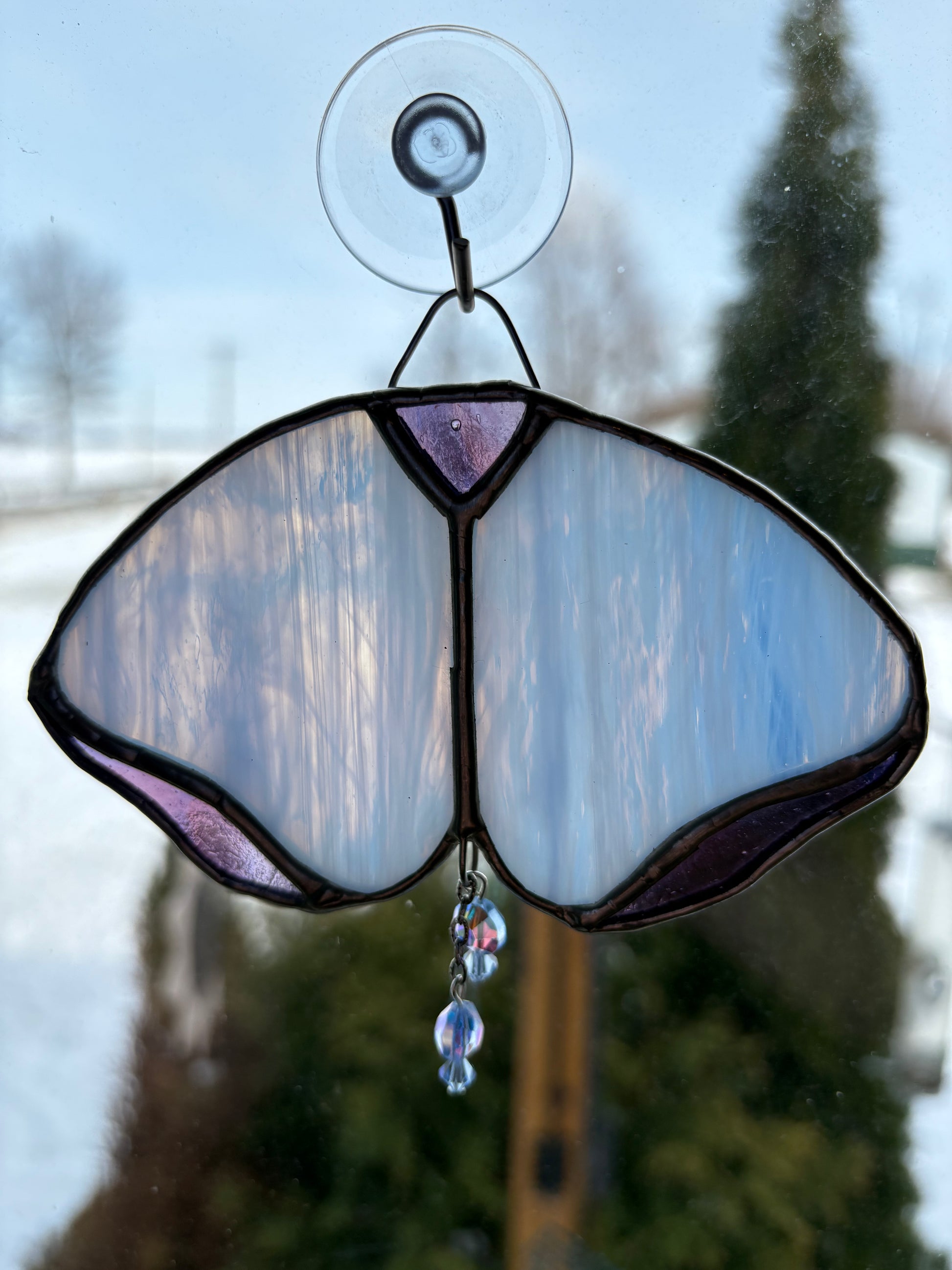 Materials: glass, copper foil, lead solder, black patina, finishing wax