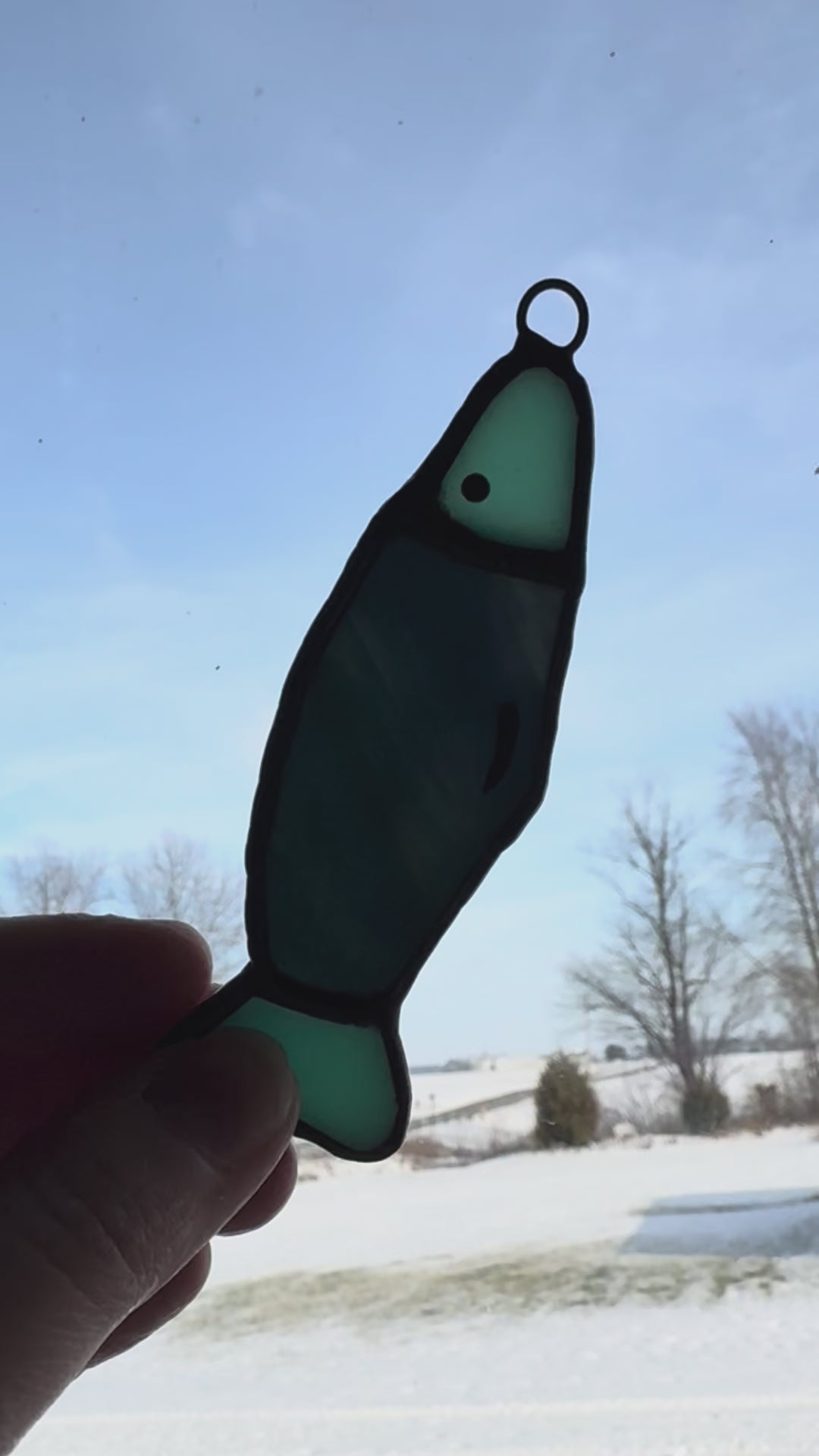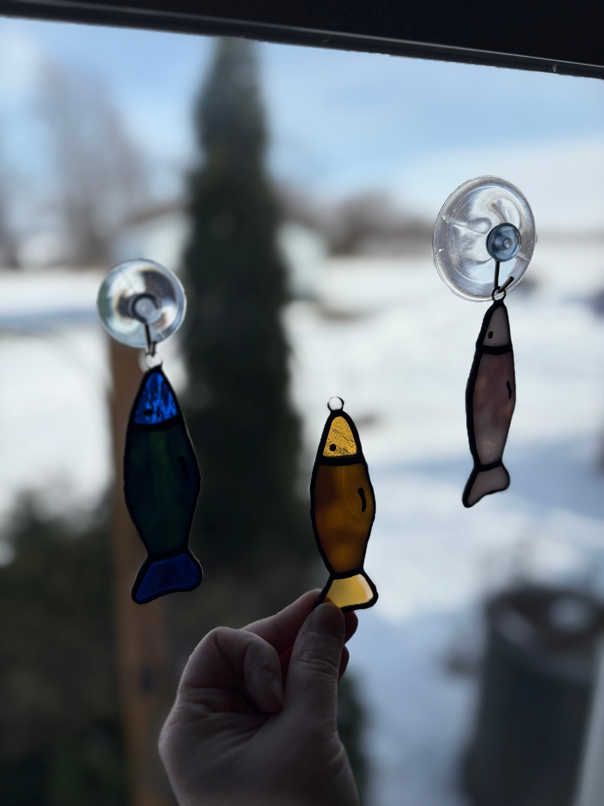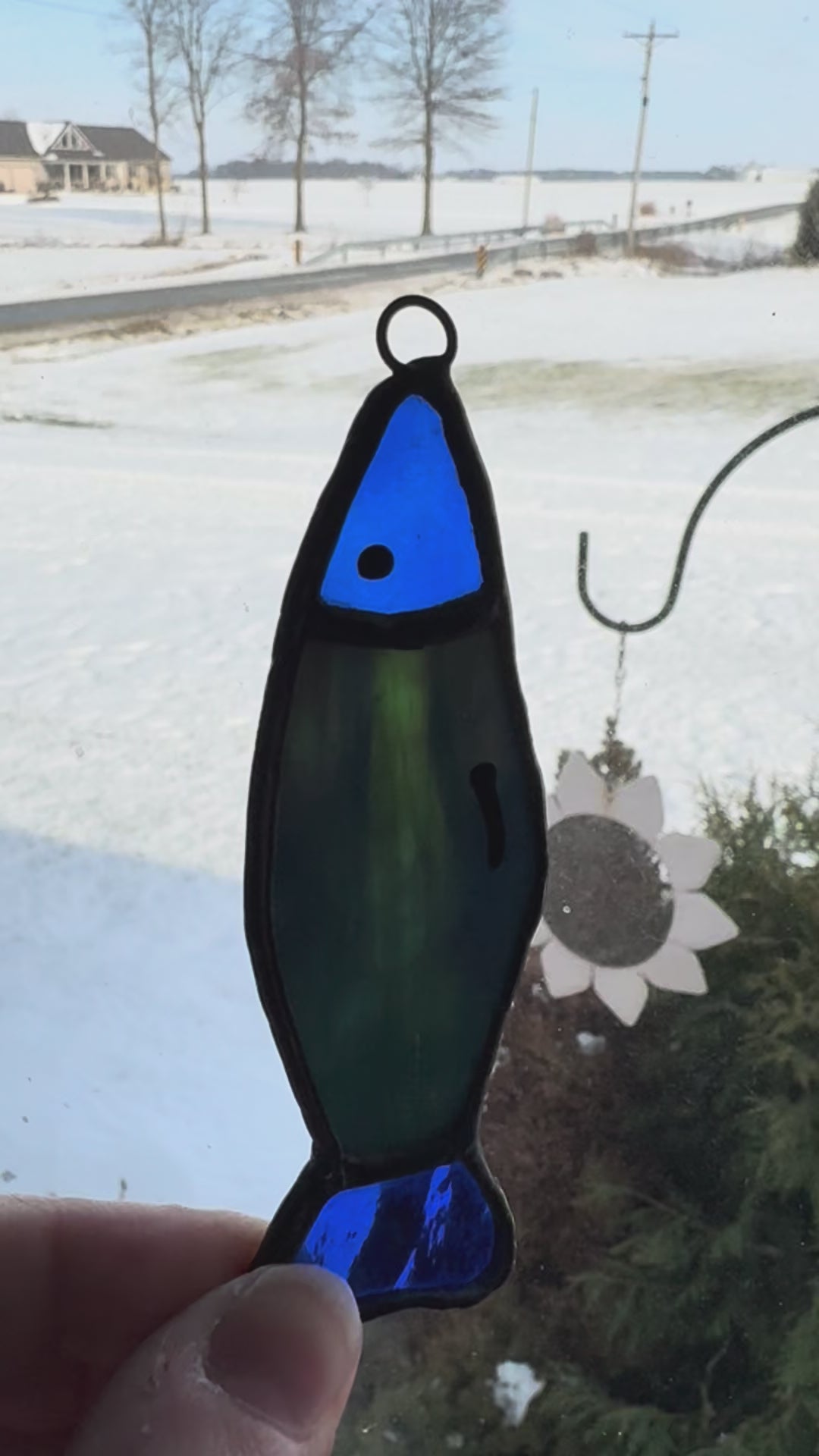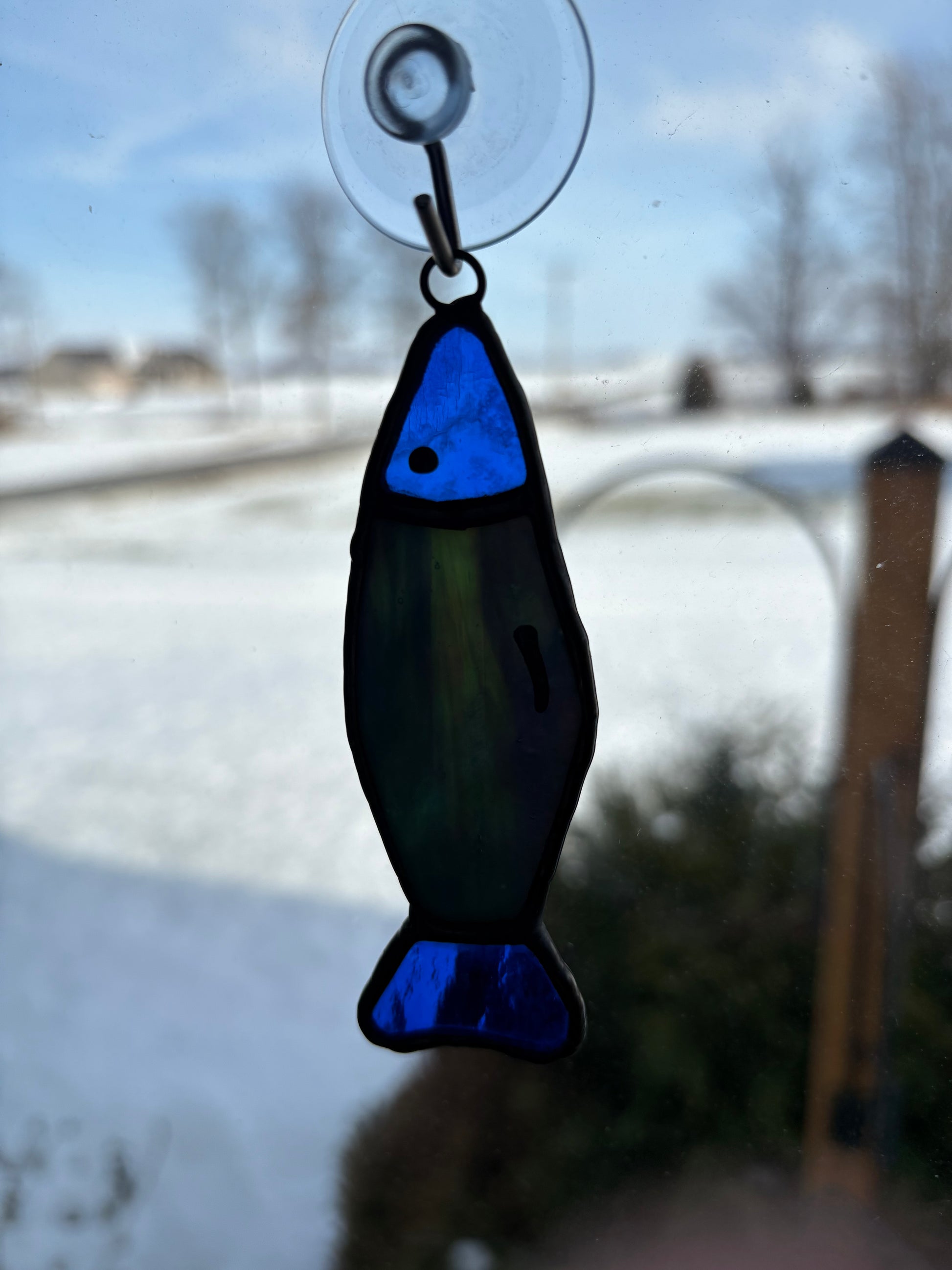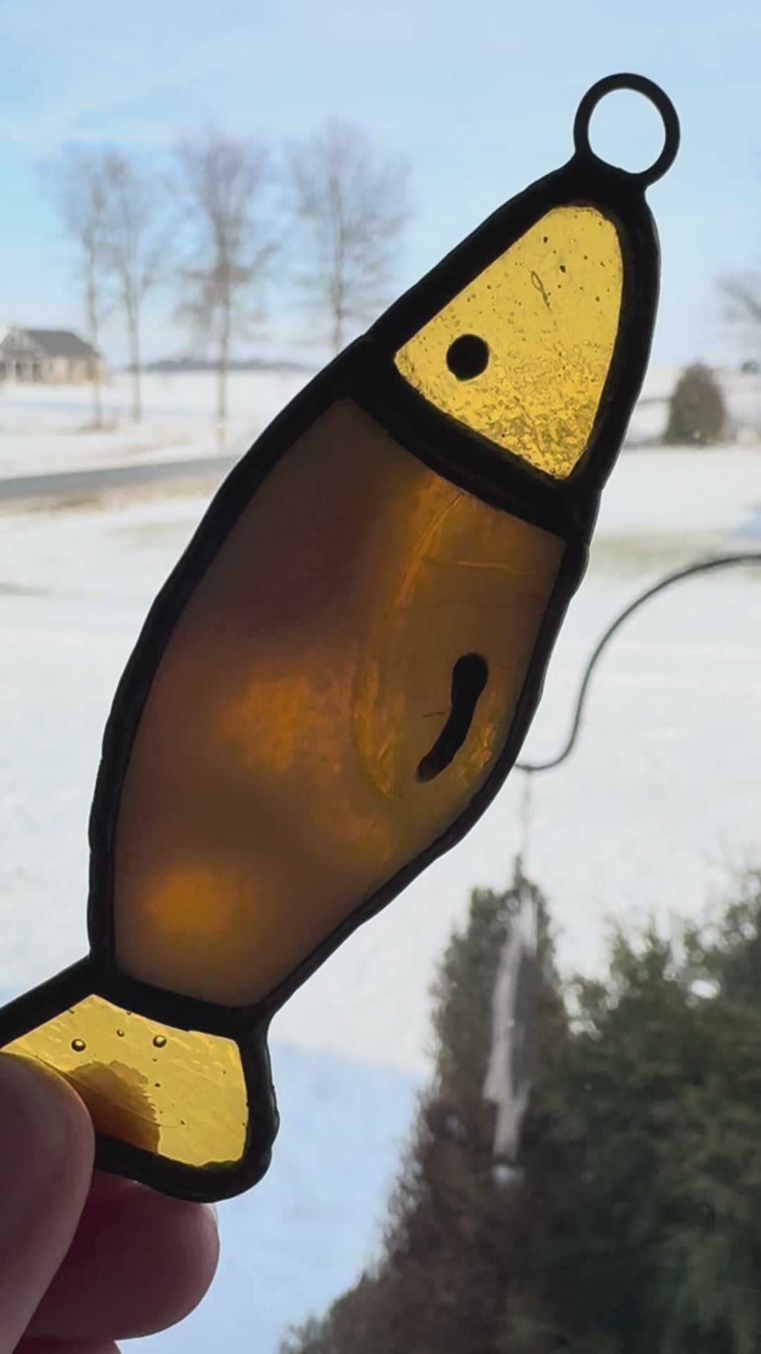 Materials: glass, copper foil, lead solder, black patina, finishing wax