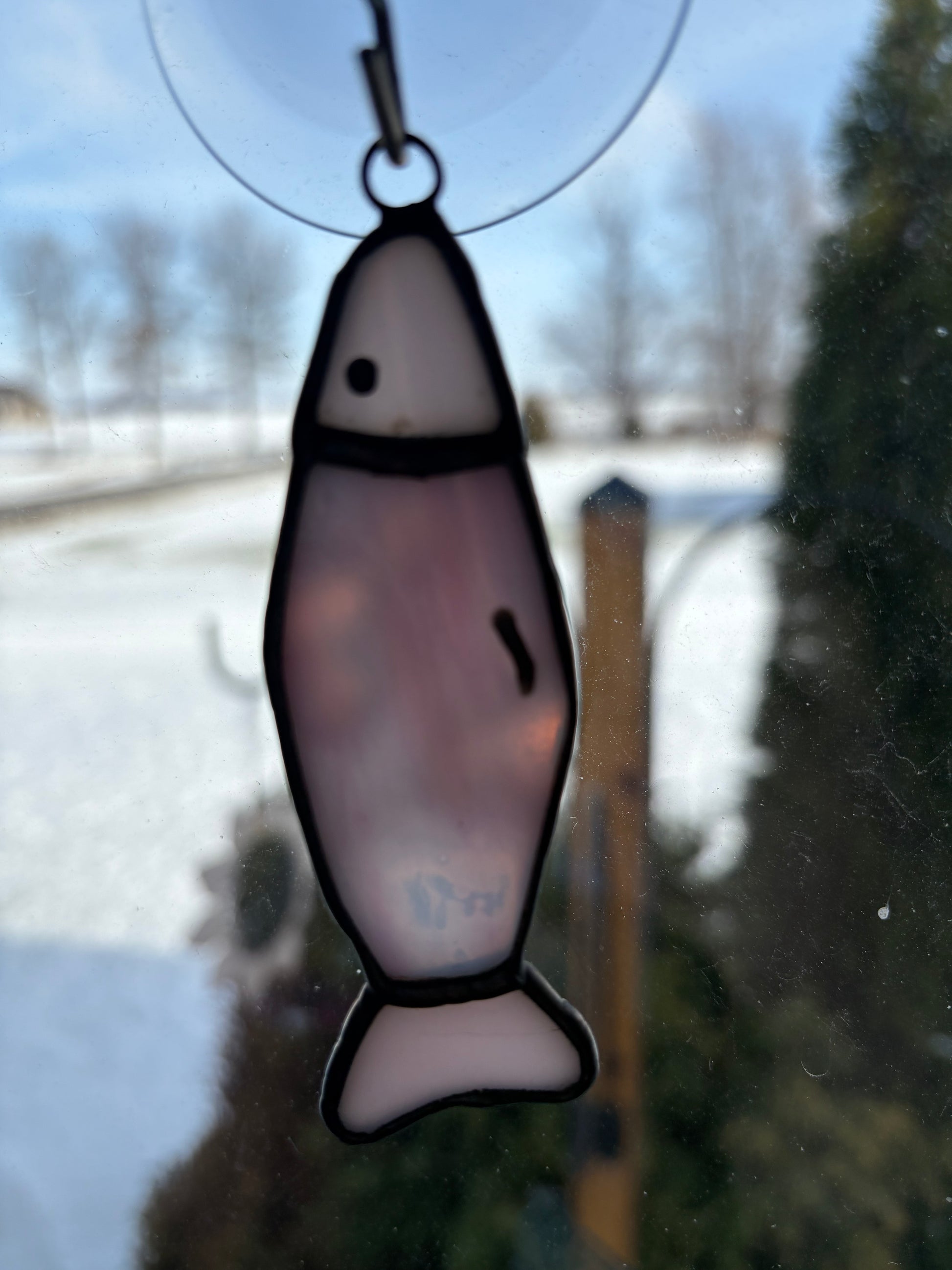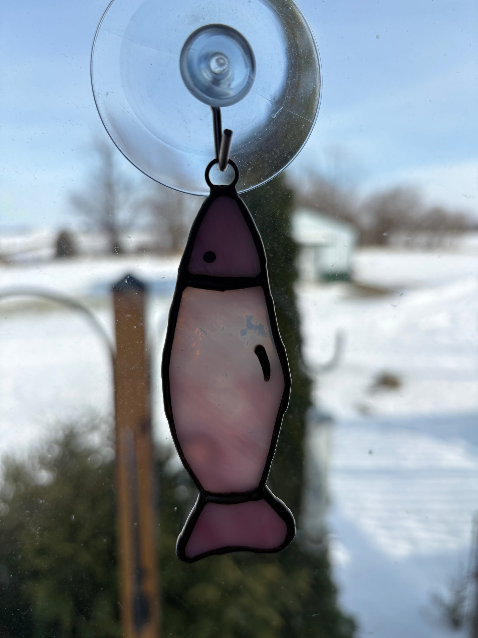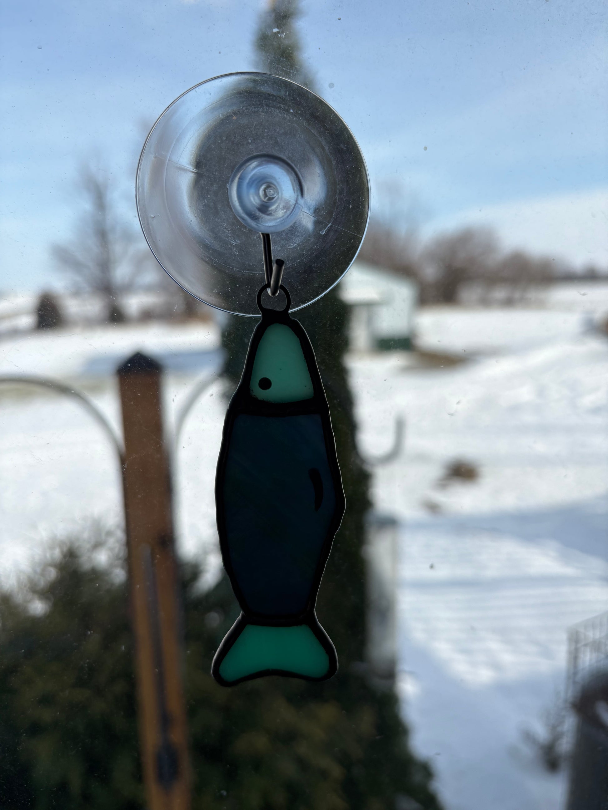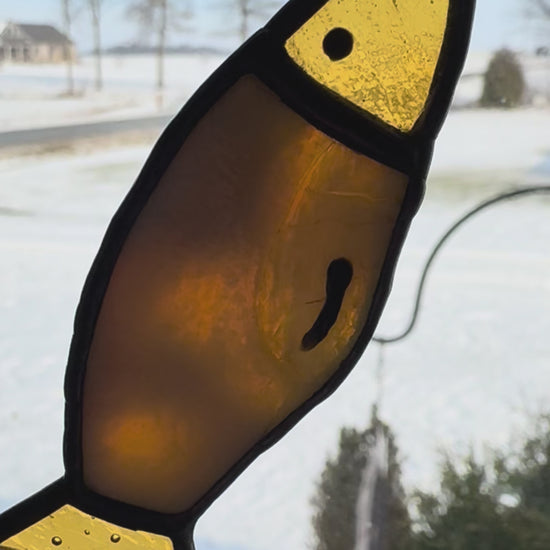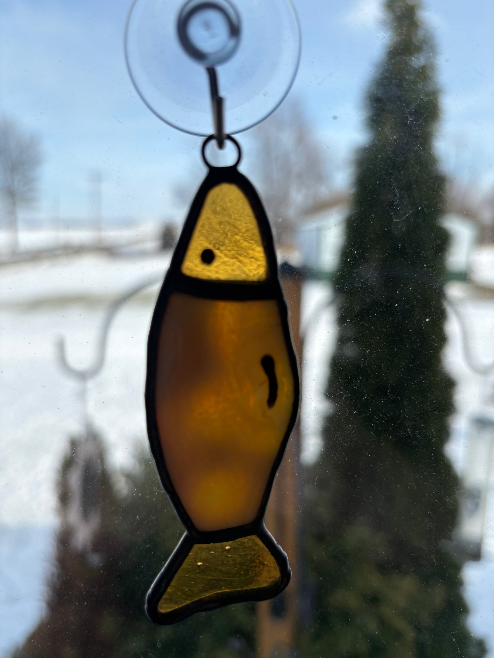 Materials: glass, copper foil, lead solder, black patina, finishing wax