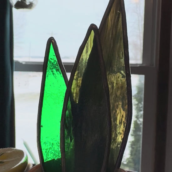 After starting to make 3D Glass plants in mid summer 2025 - I decided to make snake plant inspired plants and I’ve been making tons ever since. The subtle greens with gentle glassy curves - I can’t get enough!