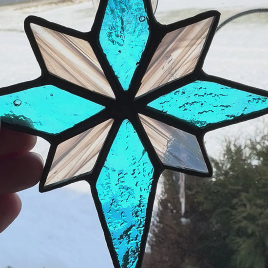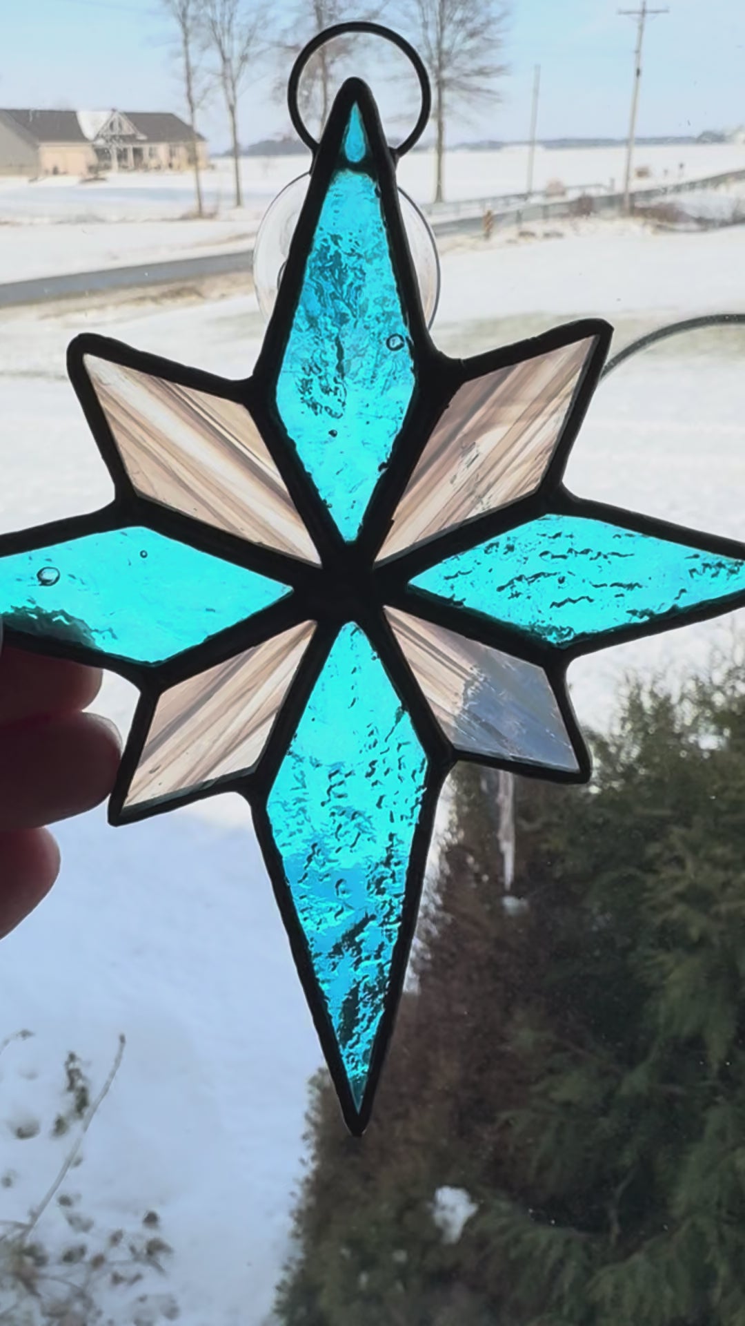 Bold blues and streaky whites make the perfect snowflake window charm!