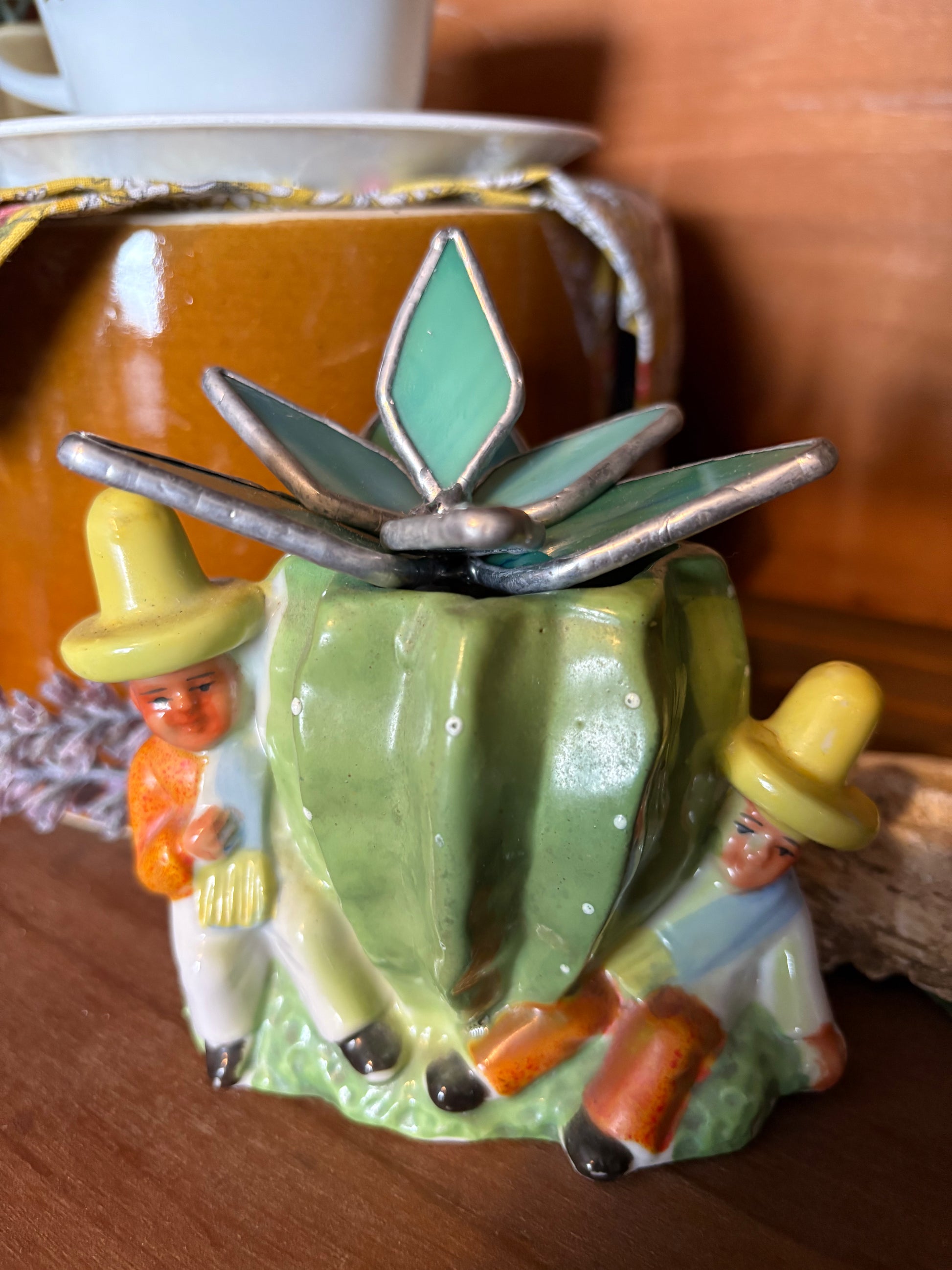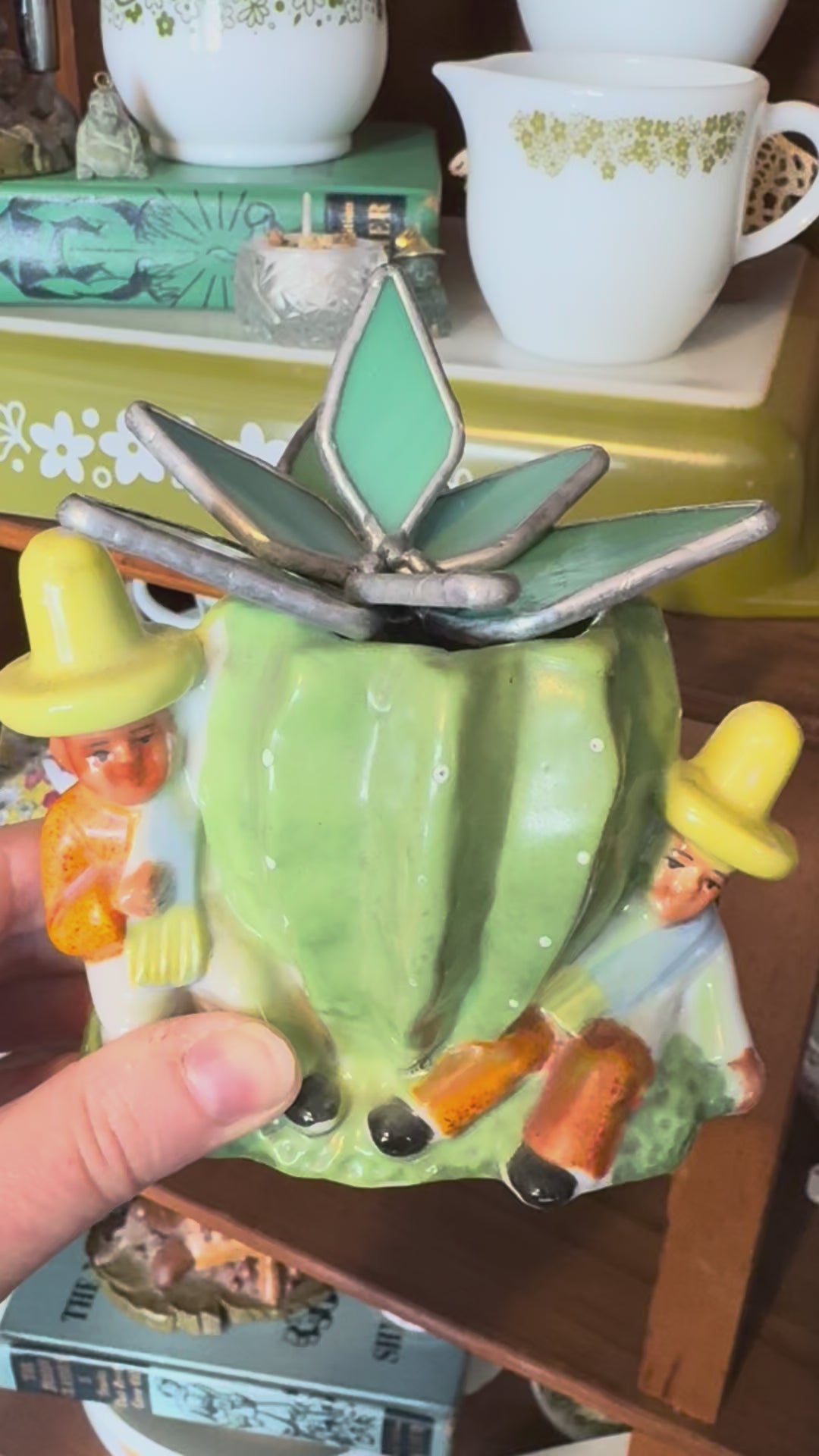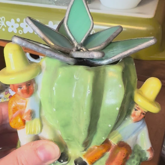 The succulent in this listing has 7 petals with one uplifted for extra flair as if it really is blossing out of the cactus vase. The vase measures approximately 4.5x3 inches and the succulent measures approximately 3.25inches top measurements.